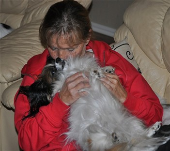 Tiffie fick följa med medans de andra fick vara hemma hos husse och Chipset.