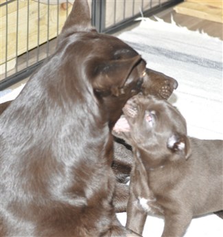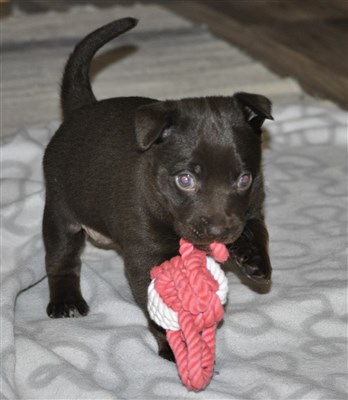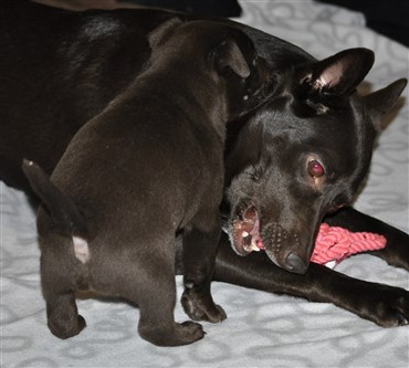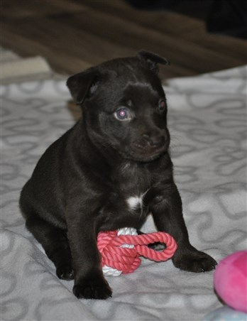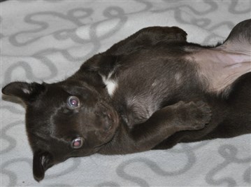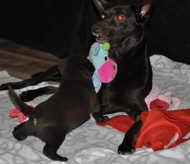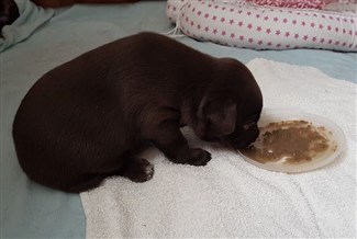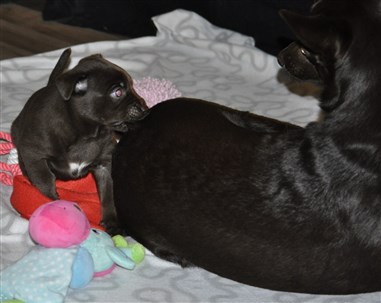 Lillskruttan är 4 veckor idag och fortsätter att växa och nu verkar det som lugnet i valplådan är över ...