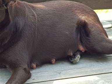 Hon har blivit lugnare och börjar nog att tycka att att magen är lite i vägen ibland