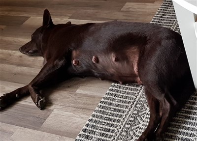 Men nu blir det att ta det lite lugnt med promenaderna för den blivande mamman som får spara på krafterna inför valpningen.